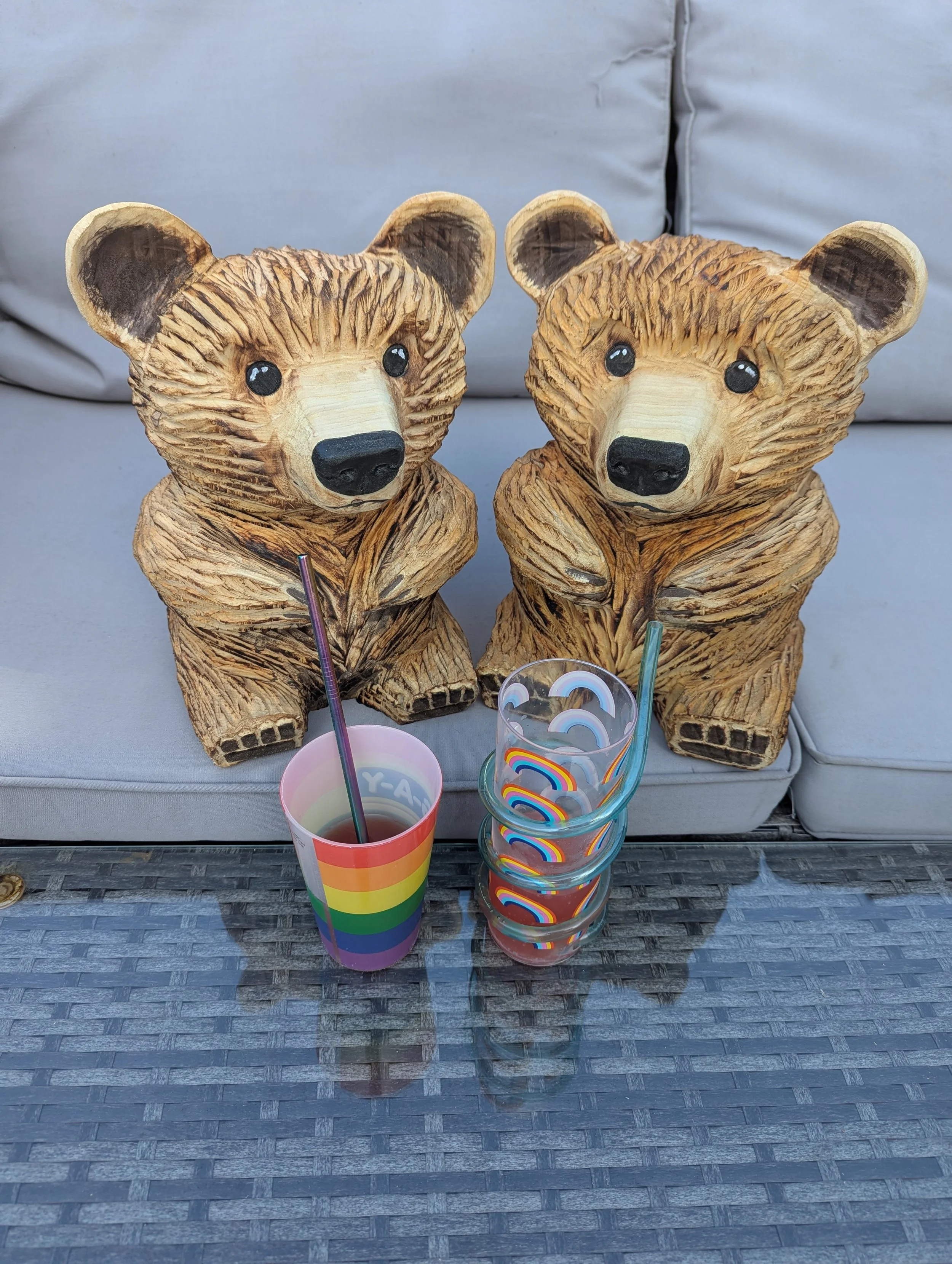 Once carved, each bear is treated with a protective wood oil to help guard against the elements, making them suitable for both indoor and outdoor display.